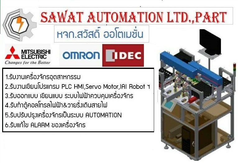 เรารับทำเครื่องจักรอัตโนมัติทุกชนิดที่ใช้ผลิตในโรงงานอุตสาหกรรม รับงานเขียนโปรแกรม PLC , HMI , Servo motor , IAI Robot ฯ รับทำตู้คอนโทรลไฟฟ้าเครื่องจักร รับปรับปรุงแก้ไขเครื่องจักร